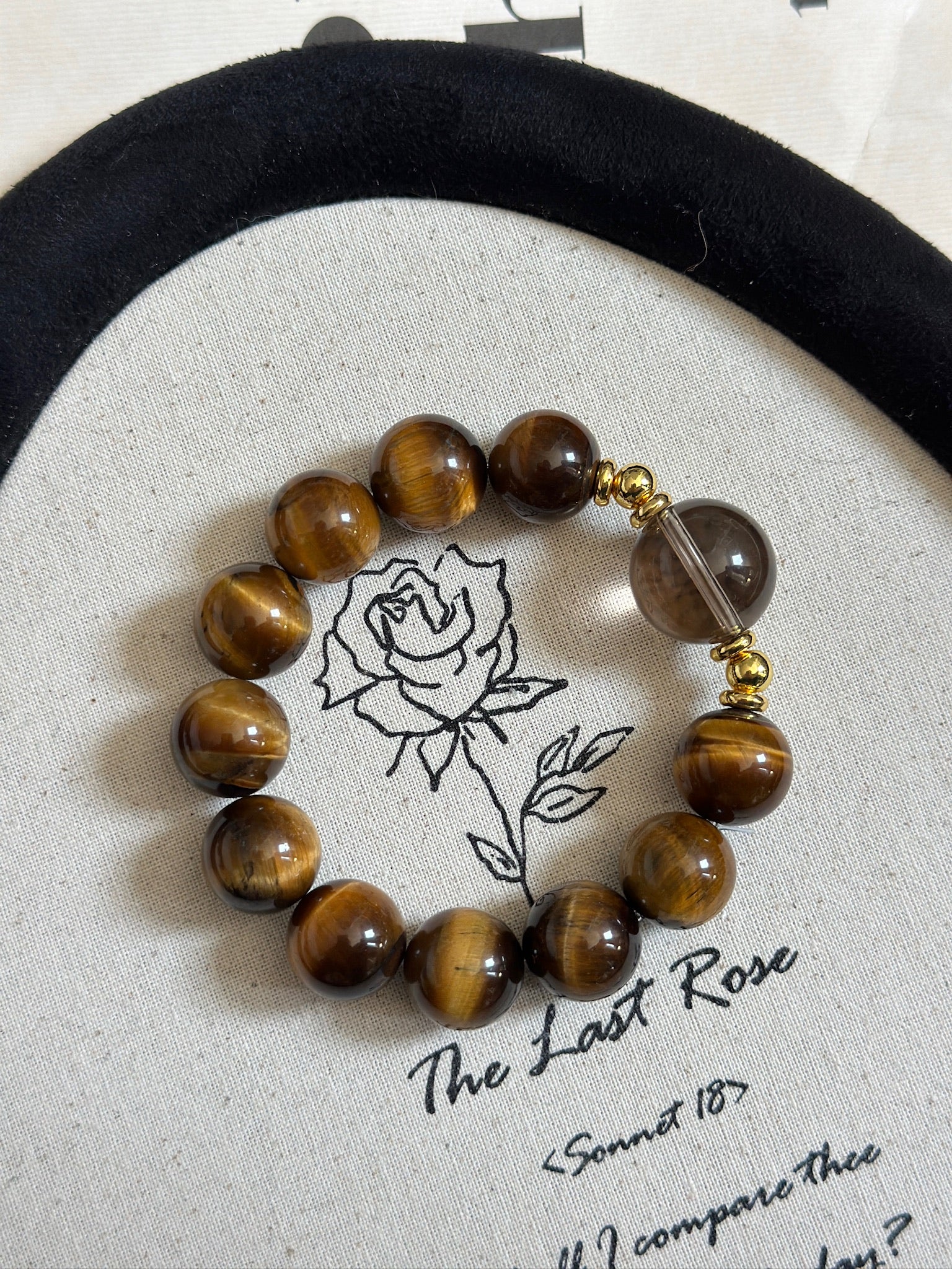 Step into strength and protection with this bold bracelet. Crafted with shimmering tiger’s eye, known for its power to bring courage, focus, and confidence, and accented with smoky quartz for grounding energy, Tiger’s Embrace is made for those who seek balance between strength and calm.